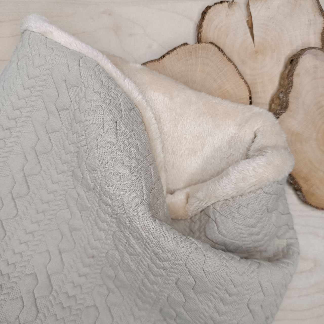 La capa exterior está hecha de punto jersey, un tejido elástico, y el interior es de suave coralina, lo que garantiza que sea cálido y muy confortable.